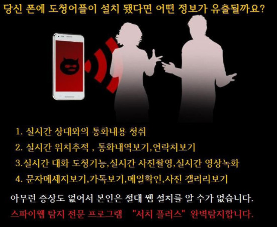 문자로 어플을 설치할수 있는 주소와 아이디/비번을 보내드립니다. 24시간 탐지가능