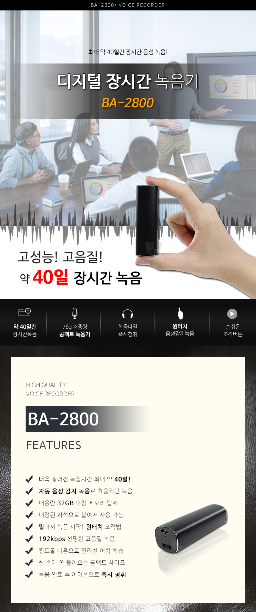 장시간 녹음기 약40일 소리감지녹음 BA-2800 차량용 녹취용 : 아름정보통신