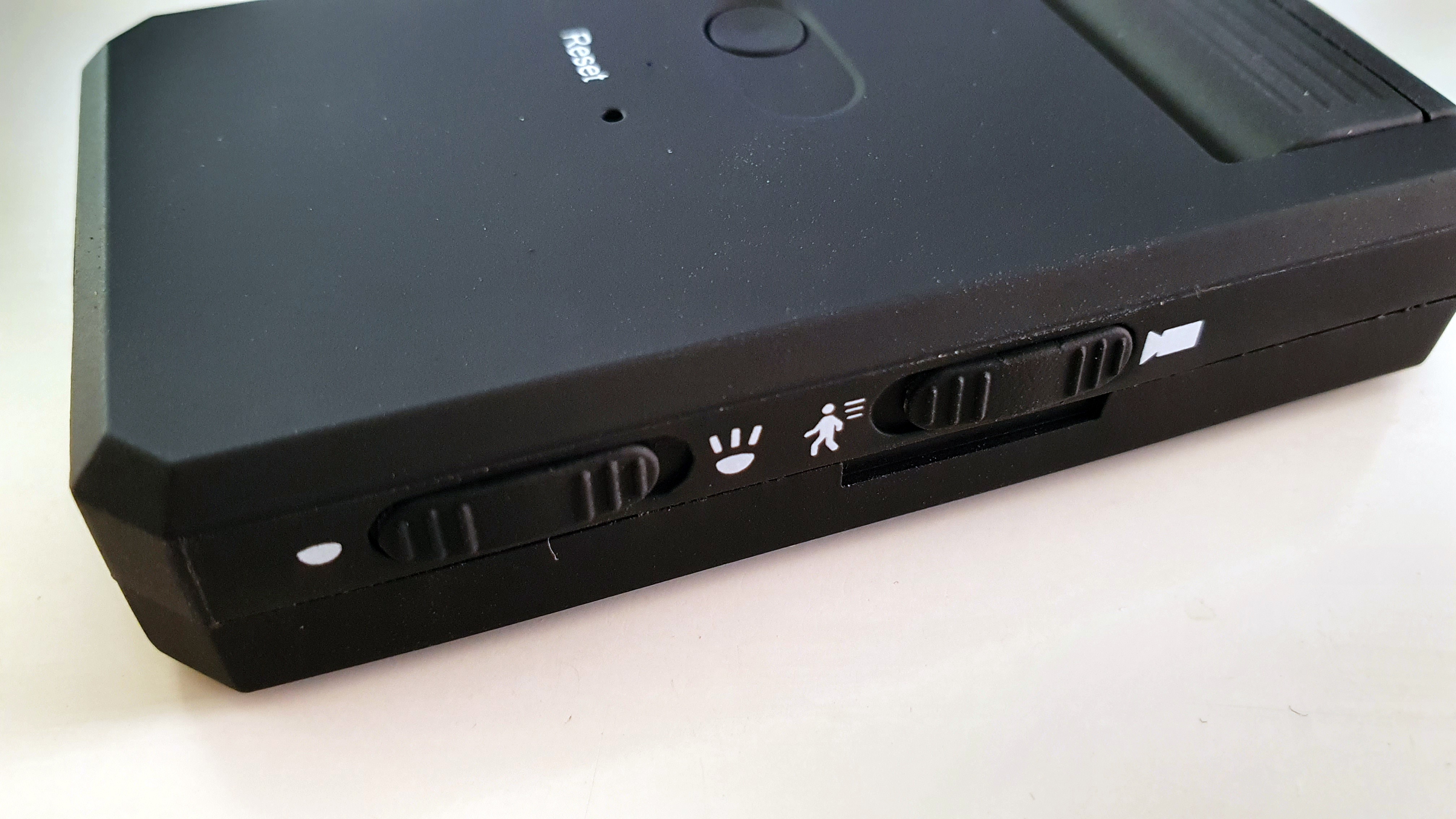 미니캠코더 옆면에 설정버튼입니다. 적외선램프를 켤것인지 끌것인지,,,연속촬영/동작감지촬영 선택을 할수 있습니다.