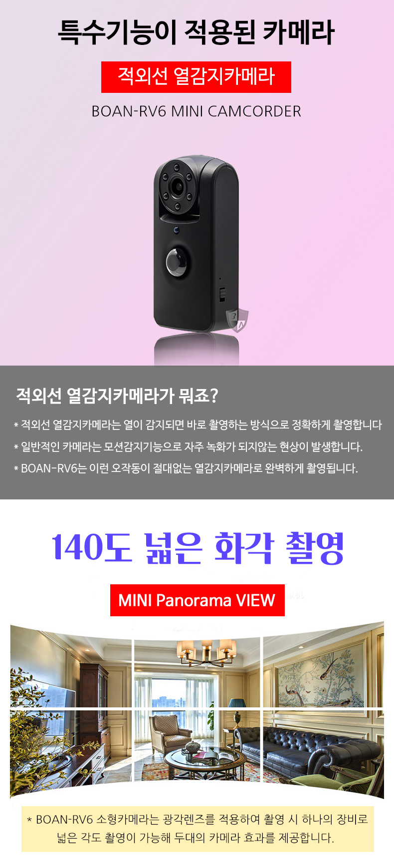포켓카메라 열감지 미니액션캠 도난방지용 CCTV 차량용 가정용 사무용 업소용 BOAN-RV6 최대5일간 촬영 적외선 열감지카메라 주거침입/ 상가,점포 감시용/창고및 보안시설 감시
