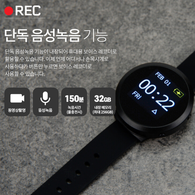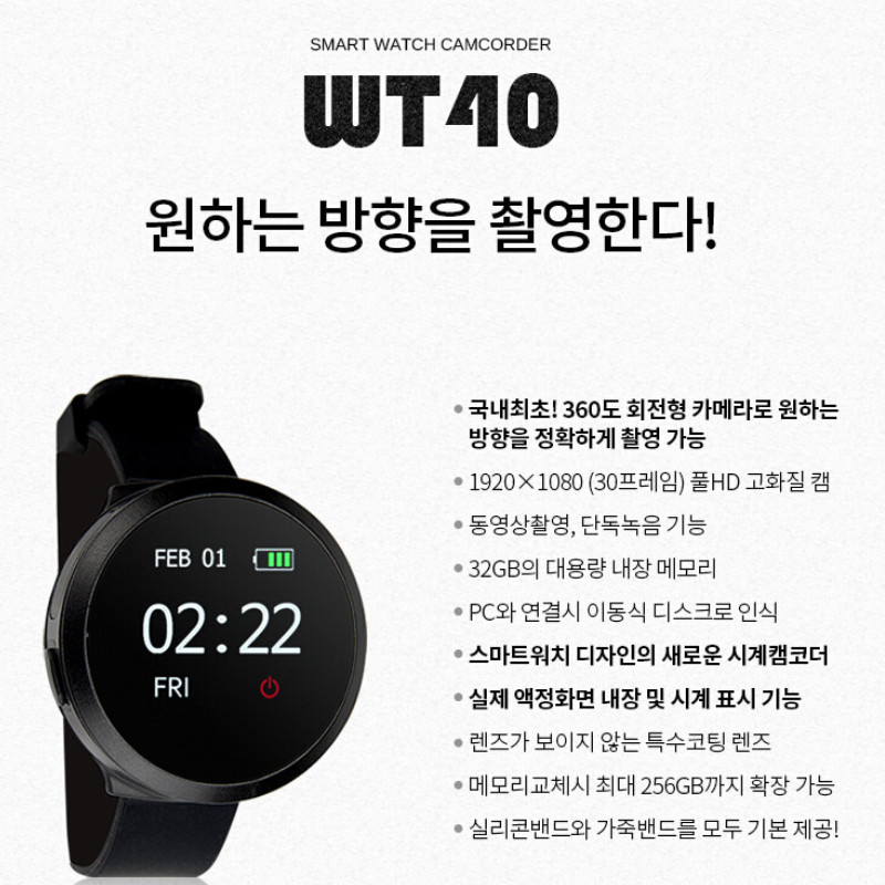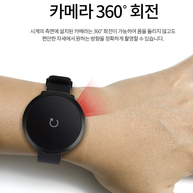 스마트워치형 시계캠코더 액정화면에 실제 시간이 표시되어 편리하며, 360도 어떤 방향이든 회전되어 자유롭게 촬영이 가능한 스마트워치형 시계카메라 입니다.