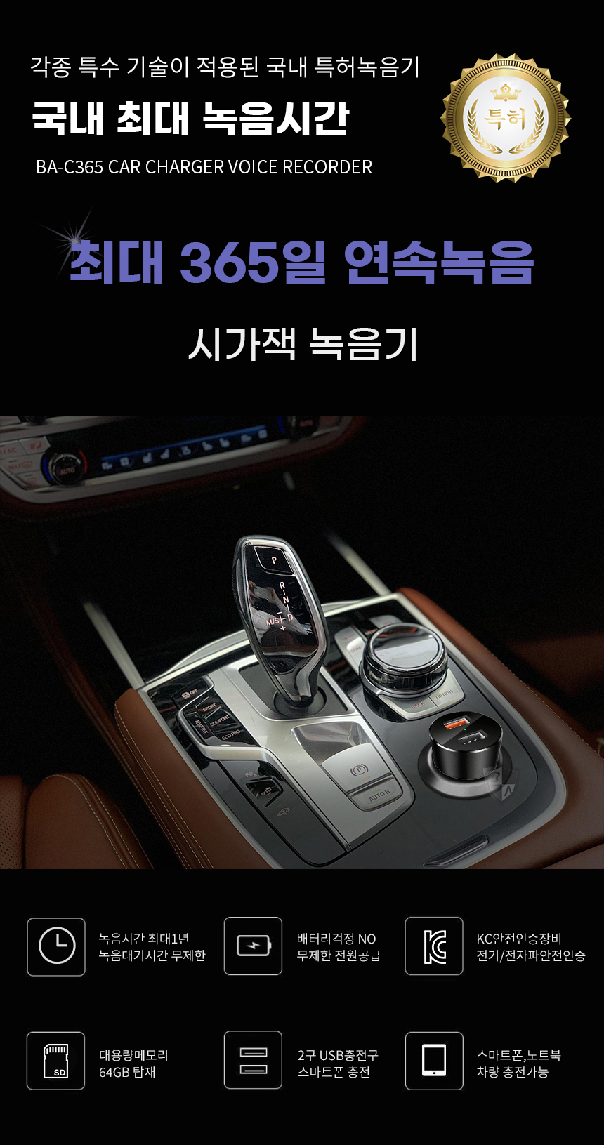 차량용 시거잭녹음기 1년대기녹음 장시간 증거용 녹취용 비밀녹음용