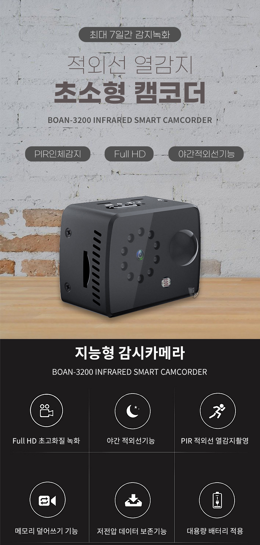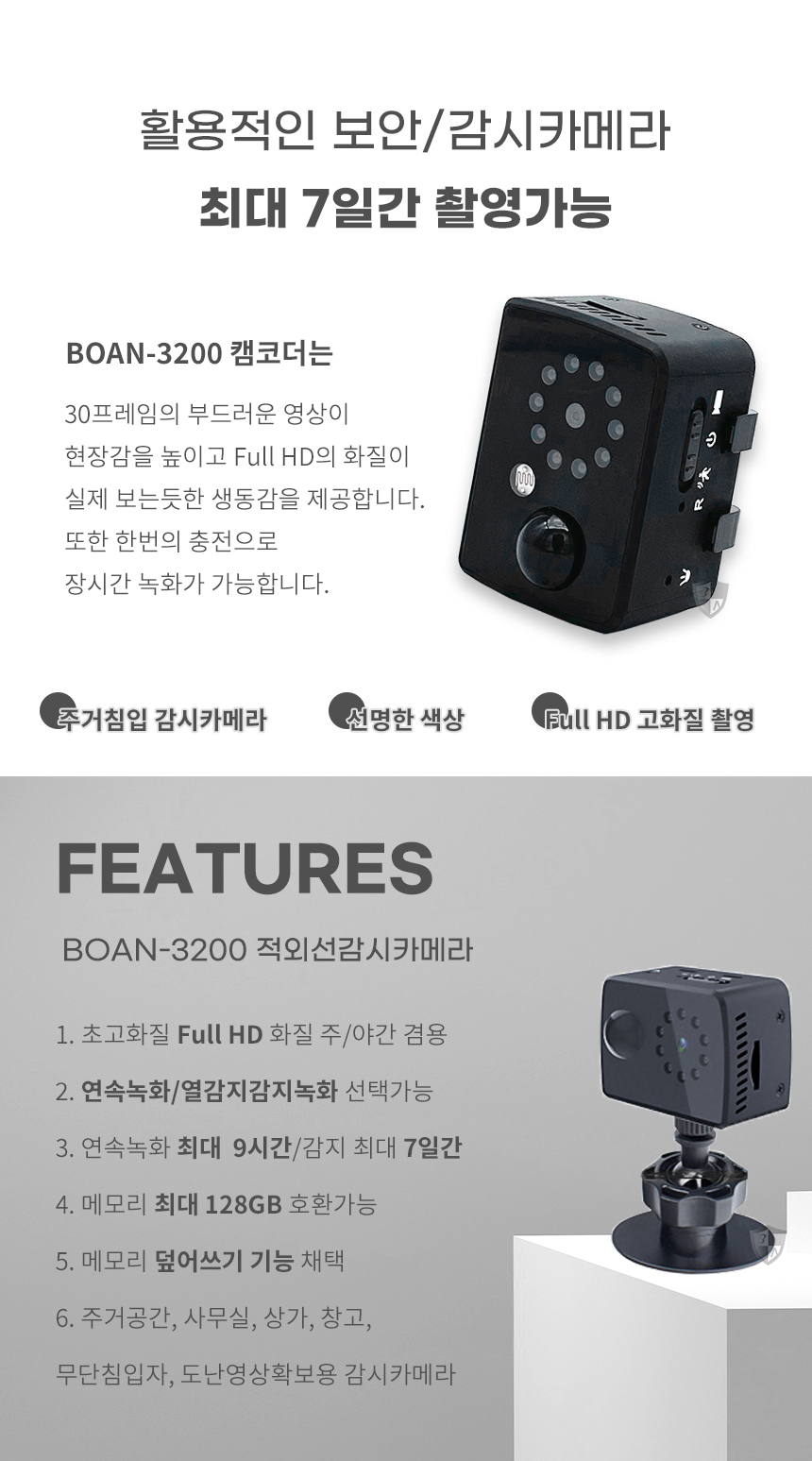 BOAN-3200 소형 카메라 감시카메라 홈 보안 CCTV 가정용 차량용 미니액션캠