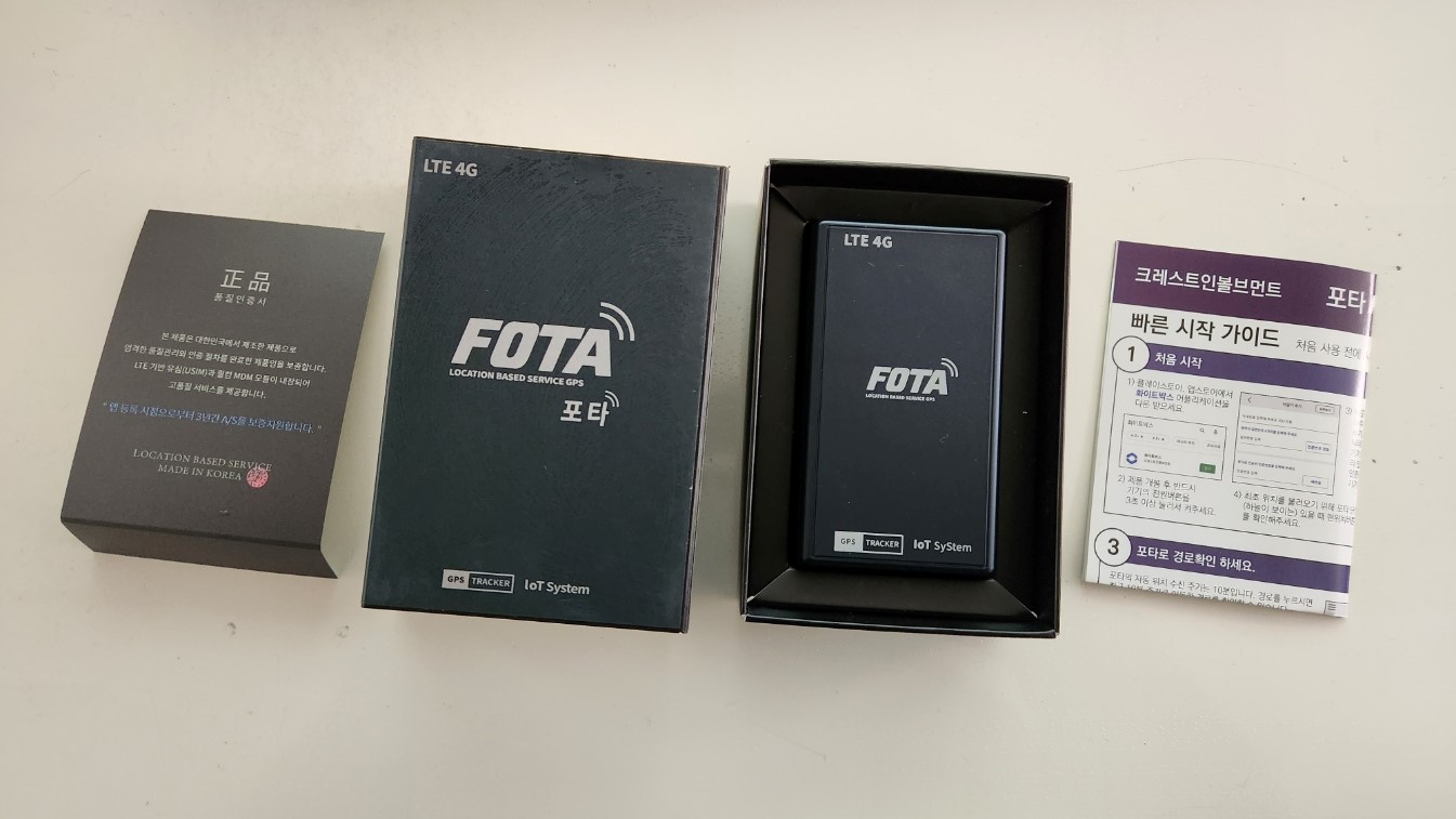 자동차 위치추적기 포타(FOTA)는 스마트폰 전용 어플리케이션을(화이트박스) 통해 간편하게 위치확인 및 관제가 가능합니다. 기존 시중에 판매되고 있는 다른 위치추적기보다 더 빠른 LTE방식을 지원하는 차량용 위치추적기로 보다 정확도가 높은 위치정보를 제공하며 배터리 소모 또한 적습니다. 별도의 약정기간없이 원하는 기간동안 자유롭게 사용이 가능하며, 출시 이벤트로 3개월무료이용권이 포함되 발송해드리고 있습니다.