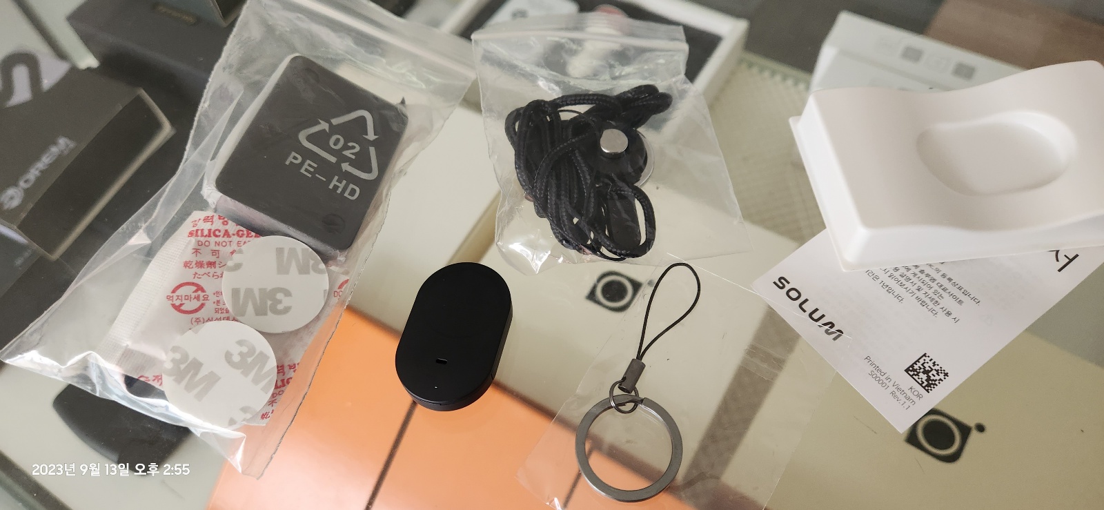 솔루엠 스마트태그 위치추적기와 방수케이스 세트입니다.