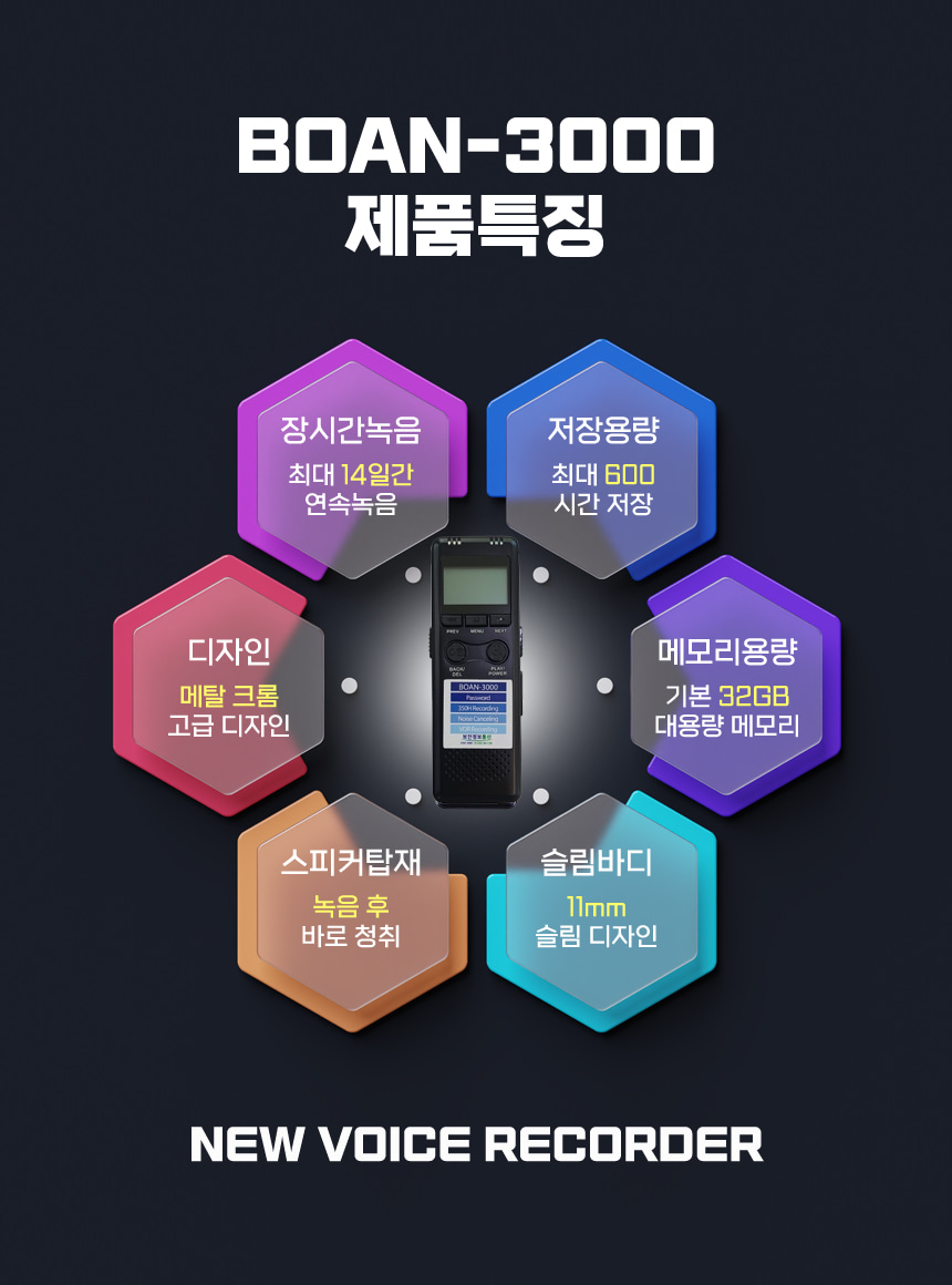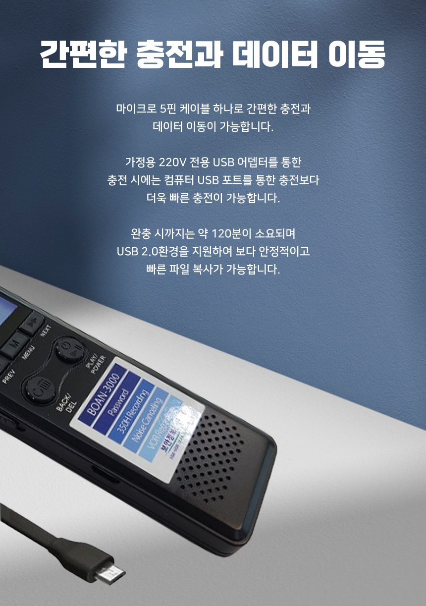 국내최장시간 대화녹음기 장시간 사용가능한 차량용 고성능소형녹음기 BOAN3000