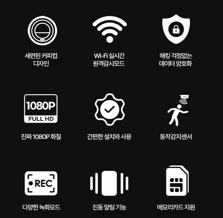 이 제품은 뚜껑형 디자인의 고성능 미니 소형 카메라로, 일반 커피컵 뚜껑처럼 생겼기 때문에 주변에 전혀 의식되지 않고 설치하거나 사용할 수 있는 게 가장 큰 특징이에요.