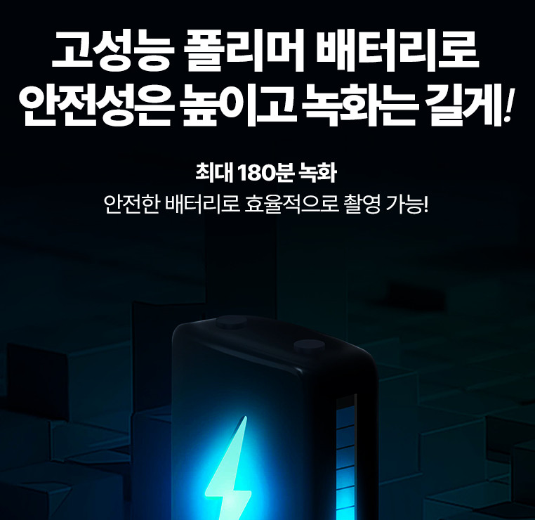 - 대용량 배터리 내장 (완충후 약180분 촬영)