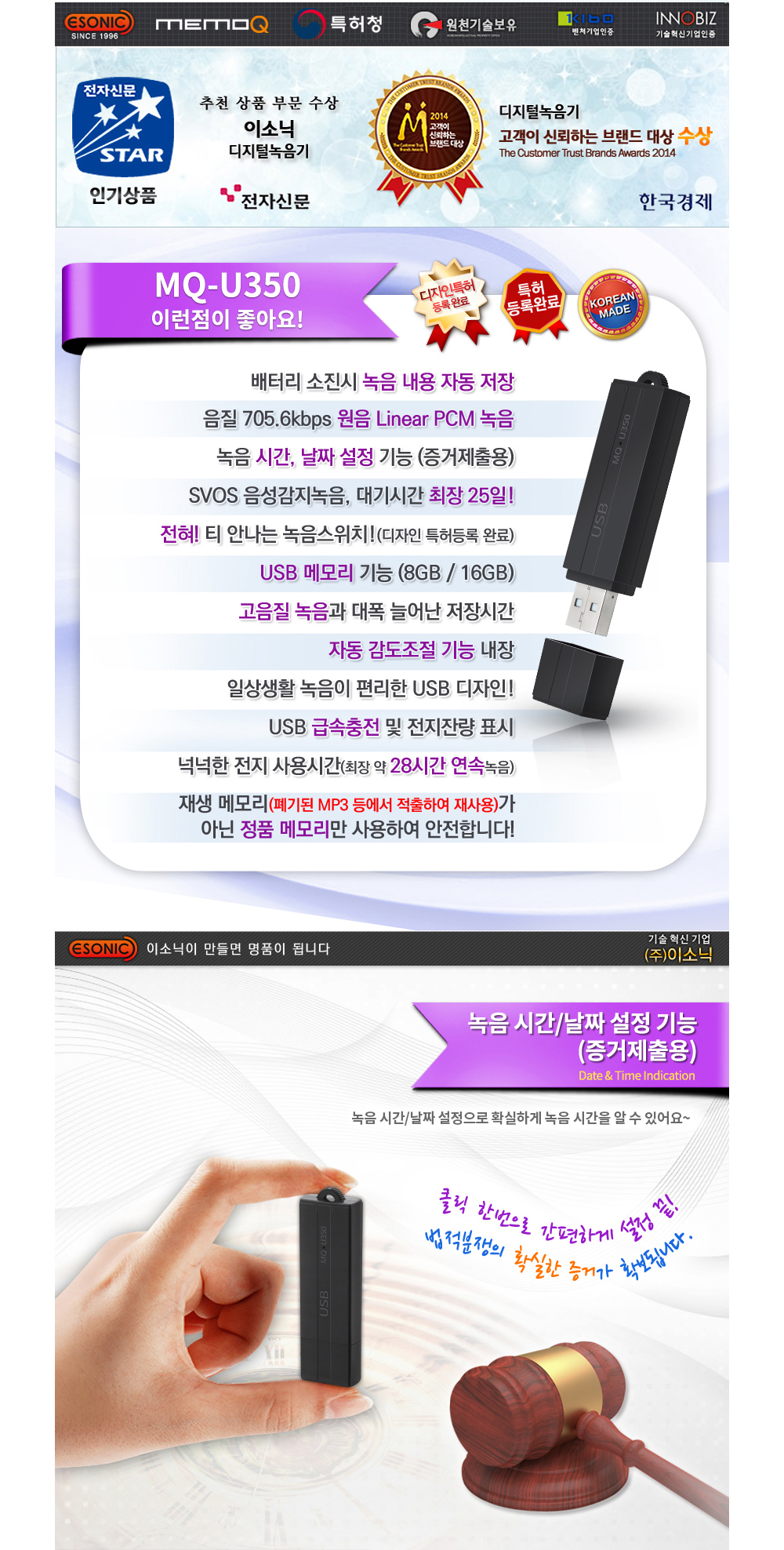 국내 생산 국내 제조 초소형녹음기 ARJ-MQU350