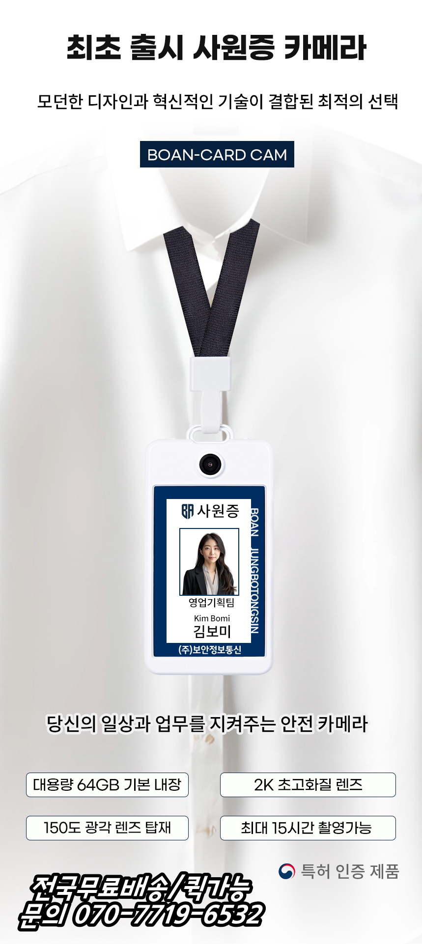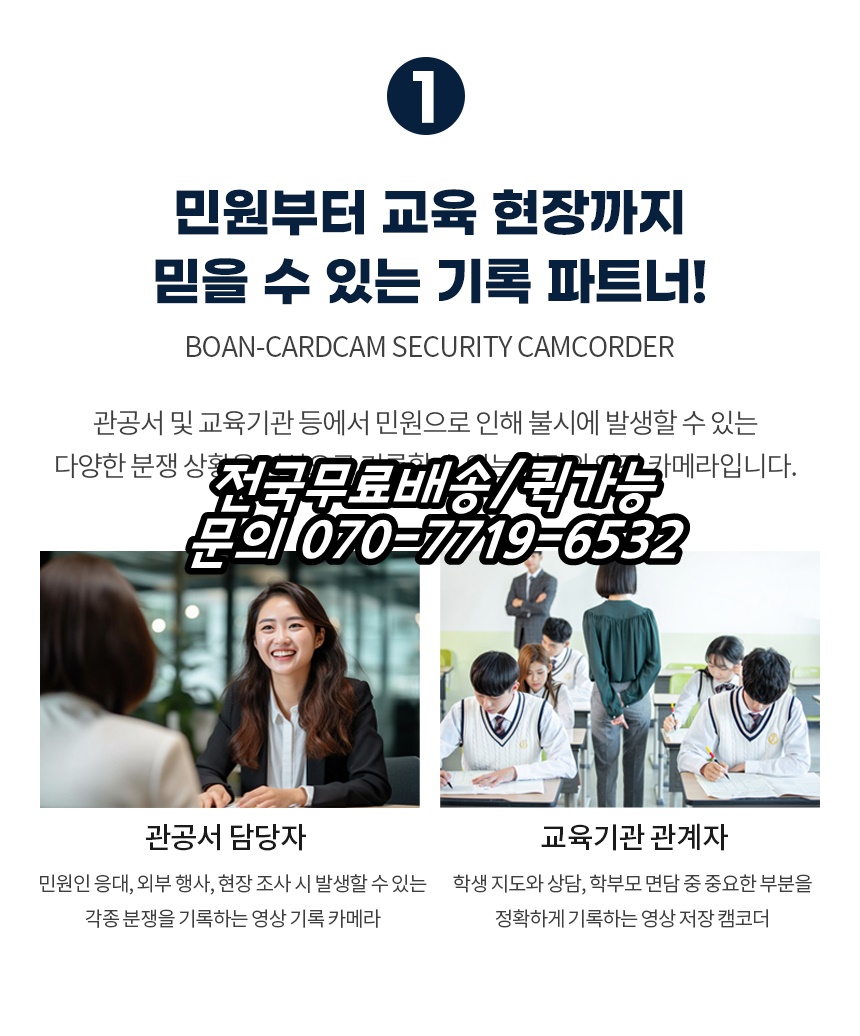 BOAN-CARDCAM 64GB 바디캠 사원증 카메라 카드캠 15시간 블랙박스 공무원 교사 의료인 안내데스크 보