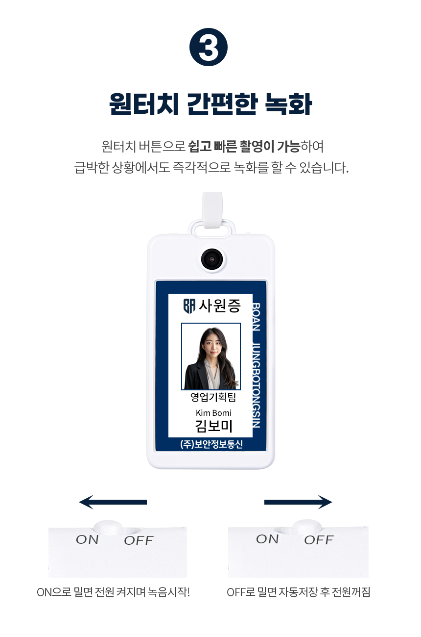 사원증 초소형 바디캠은 단순한 감시 도구가 아니라, 개인의 안전과 권리를 지키는 스마트한 솔류션이라고 생각합니다. 나를 위협하는 상황이나 나중에 필요할지도 모를 중요한 순간들을 놓치지 않고 기록함으로써, 더 안전하고 현명하게 세상을 살아가는 데 큰 도움을 줄 거에요.