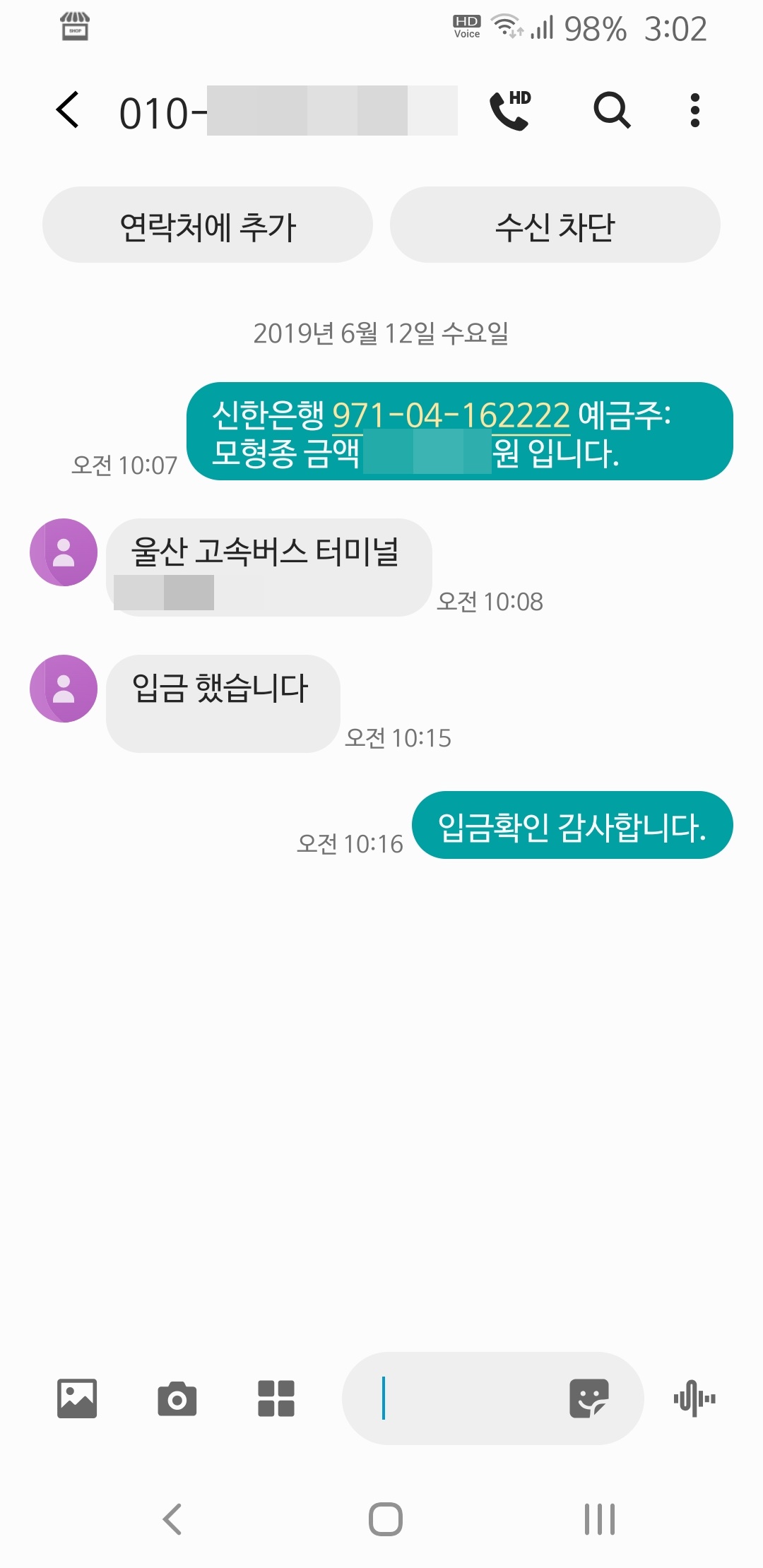 전화로 간단히 사용방법 설명해 드리고,,,입금확인문자가 오자 바로 제품 발주를 넣었습니다. 오후 3~4시경에 울산터미널에 도착할 것 같습니다.