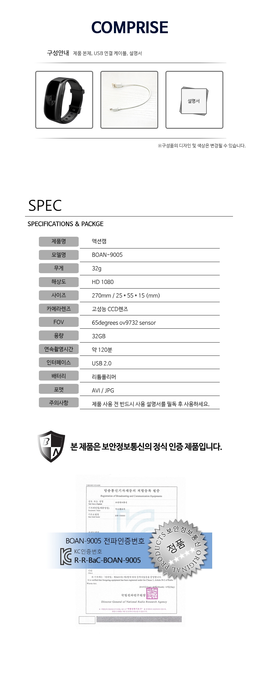 휴대용 시계카메라 BOAN-9005 출시!!