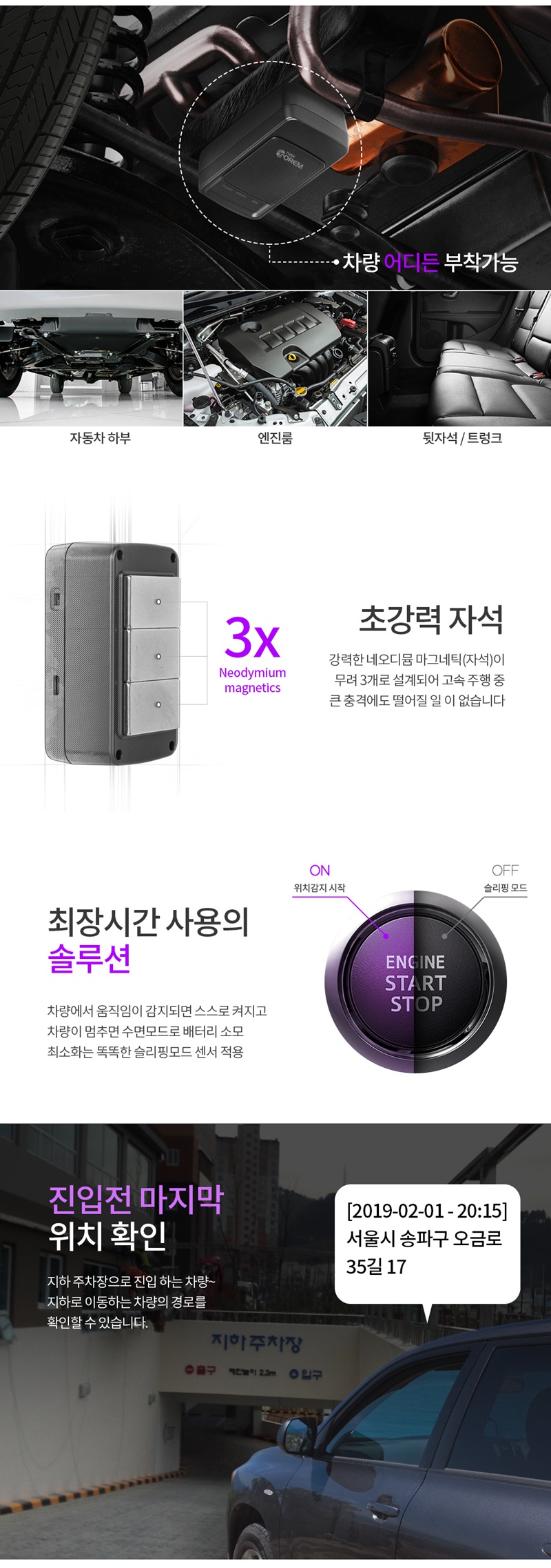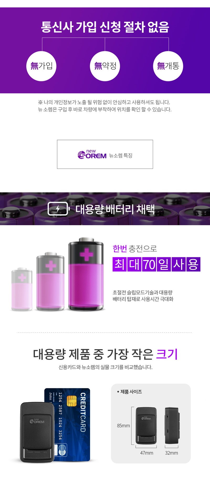 뉴소렘 차량용 GPS 위치추적기 초소형 사이즈의 무선형 무약정 무가입 자동차위치추적기